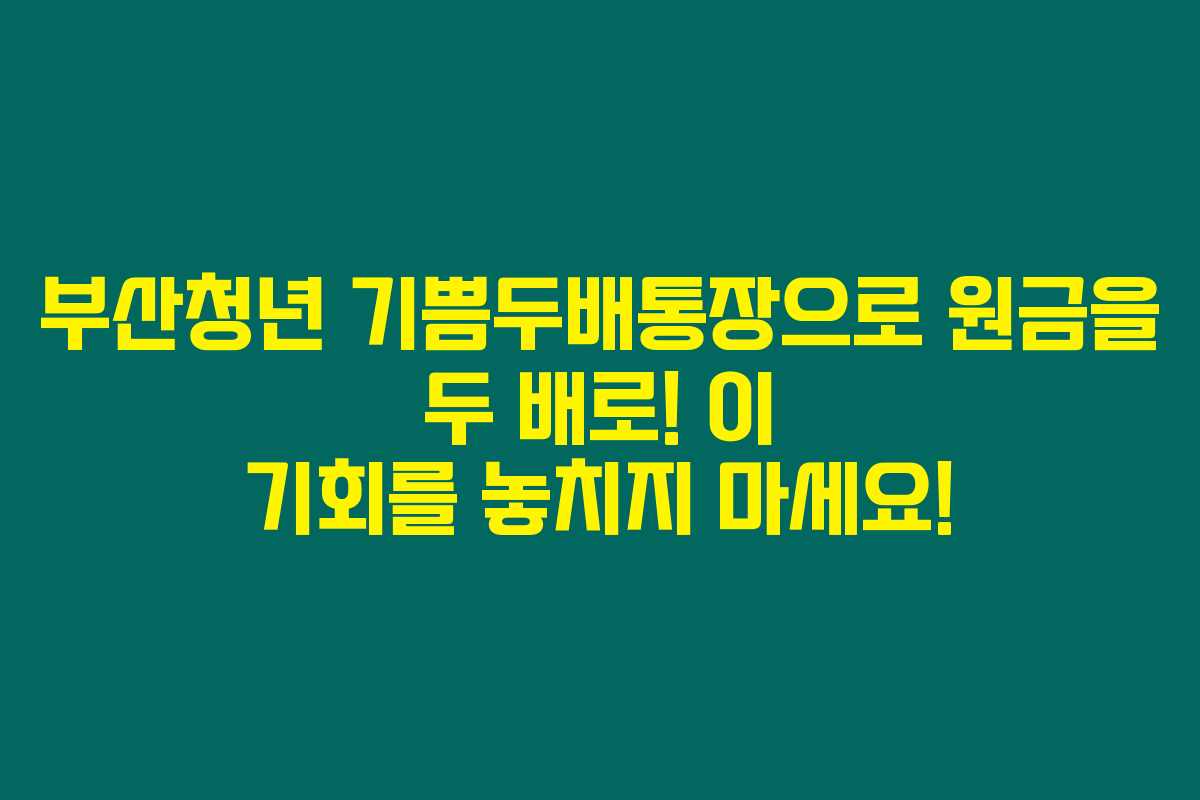 2024년 부산청년 기쁨두배통장은 부산에 사는 청년들에게 원금을 2배로 불릴 수 있는 환상적인 기회입니다. 청년이라면 누구나 쉽게 가입할 수 있으며 절대 놓쳐선 안 되는 혜택을 알아보세요. 이 기회를 통해 재정적 안정을 도모하고 미래를 계획할 수 있는 방법을 알려드릴게요.