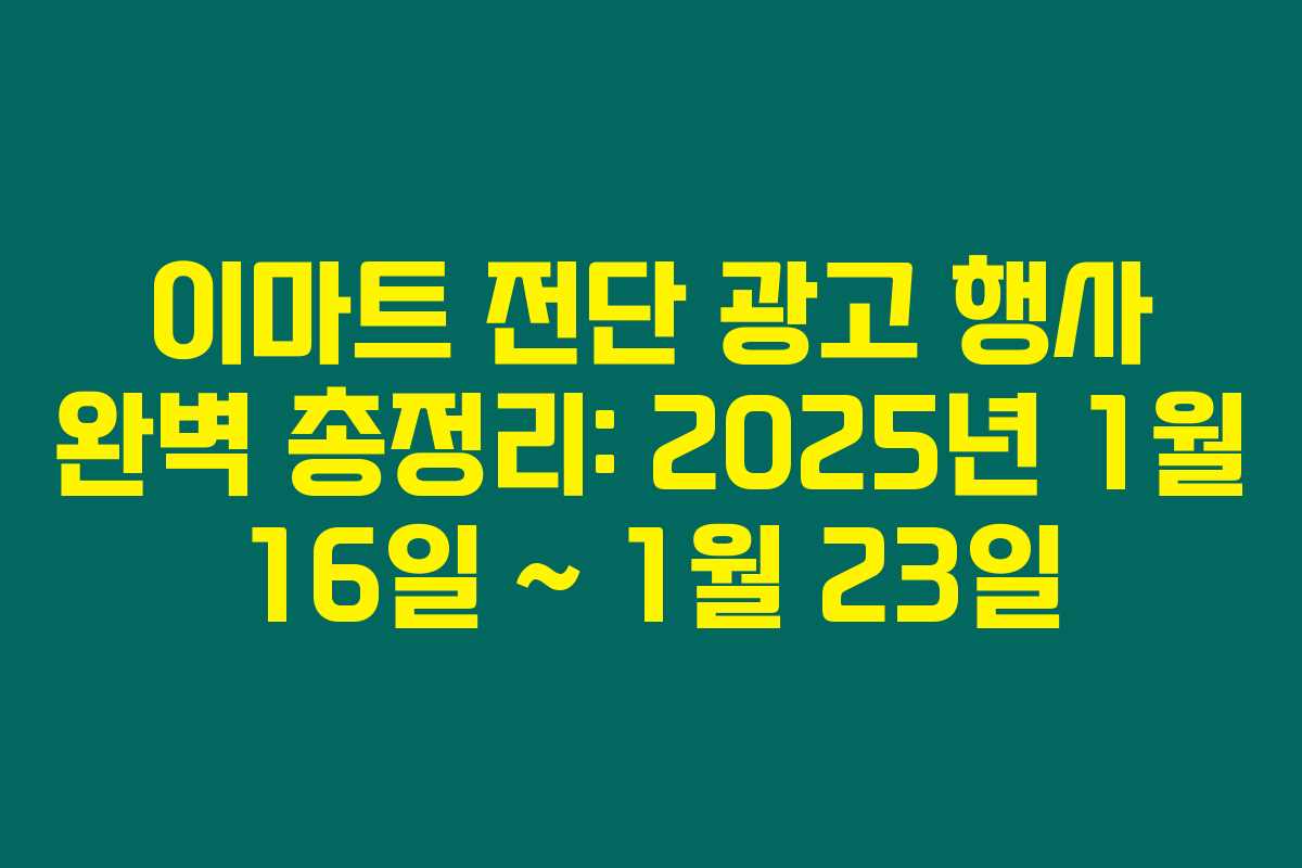 설 명절을 앞두고 이마트에서 진행하는 다양한 행사들을 놓치지 마세요! 이 글에서는 2025년 1월 16일부터 1월 23일까지의 이마트 전단 광고 행사 내용을 상세히 정리했어요. 이마트의 특가 상품과 제철 식품, 명절 필수품을 한눈에 살펴보고, 스마트한 소비로 알뜰한 쇼핑을 즐겨보세요!
