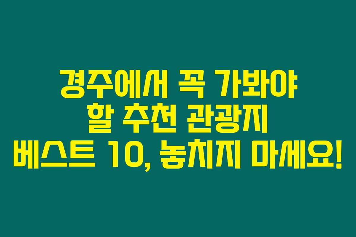 경주는 역사와 자연의 아름다움이 만나는 곳으로, 한 번의 여행으로 모두 둘러보기엔 부족할 정도로 다양한 매력을 지니고 있어요. 이런 경주를 여행 할 계획이라면 꼭 가봐야 할 경주 가볼만한곳 베스트 10을 살펴보세요. 아래를 읽어보시면 경주 여행에서 놓치면 안 될 필수 코스를 확인할 수 있습니다!