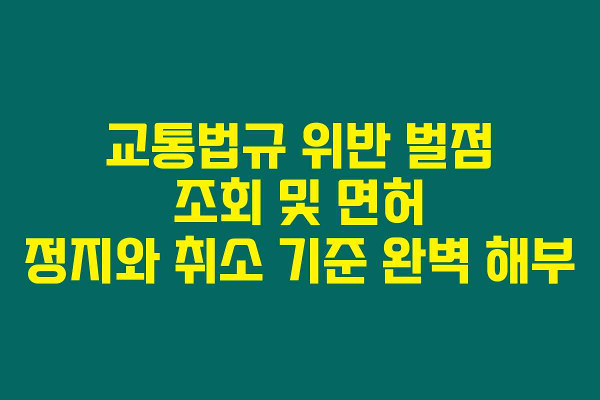 운전 중 교통법규를 오해하거나 잘못 지킨 경우, 벌점을 부과받게 되죠. 그렇다면 이 벌점이 과연 어떤 기준으로 부과되고 면허에 미치는 영향은 얼마나 클까요? 아래를 읽어보시면, 벌점 조회 방법과 면허 정지 및 취소 기준에 대한 모든 것을 정리해드릴게요.
