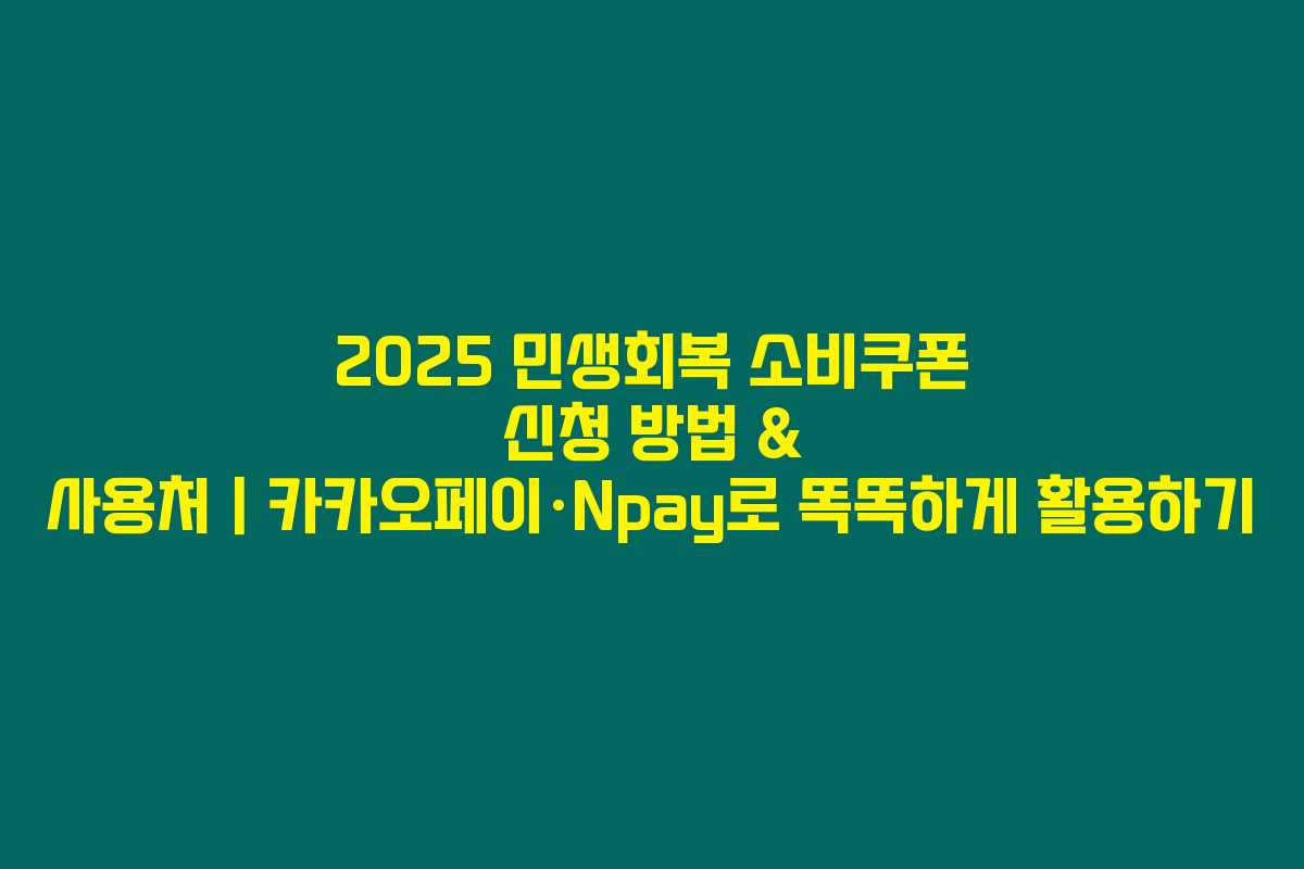 민생회복 소비쿠폰을 통해 우리 생활에 실질적인 혜택을 누릴 수 있습니다. 아직 신청 방법이나 사용처가 헷갈리신가요? 아래를 읽어보시면 Npay와 카카오페이의 활용 꿀팁을 통해 더 많은 혜택을 누릴 수 있는 방법을 알게 될 거예요.