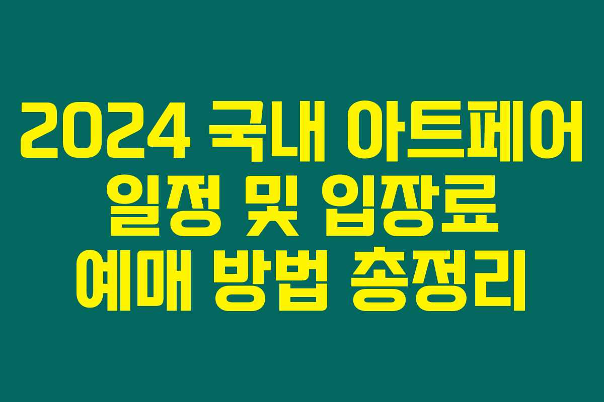 2024년 국내 아트페어가 궁금하신가요? 다양한 아트페어가 여러분을 기다리는데요, 날짜와 장소, 그리고 입장료에 대한 모든 정보를 확인하실 수 있습니다. 아래를 읽어보시면 미리 예매하고 혜택을 누릴 수 있는 방법도 안내합니다.