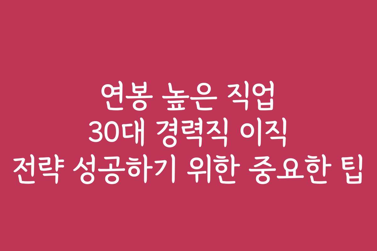 핵심 키워드: 이직 전략, 30대 경력직, 연봉 높은 직업, 면접 준비, 네트워킹, 자기소개서, 이력서 작성, 경력 분석, 커리어 발전, IT, 마케팅