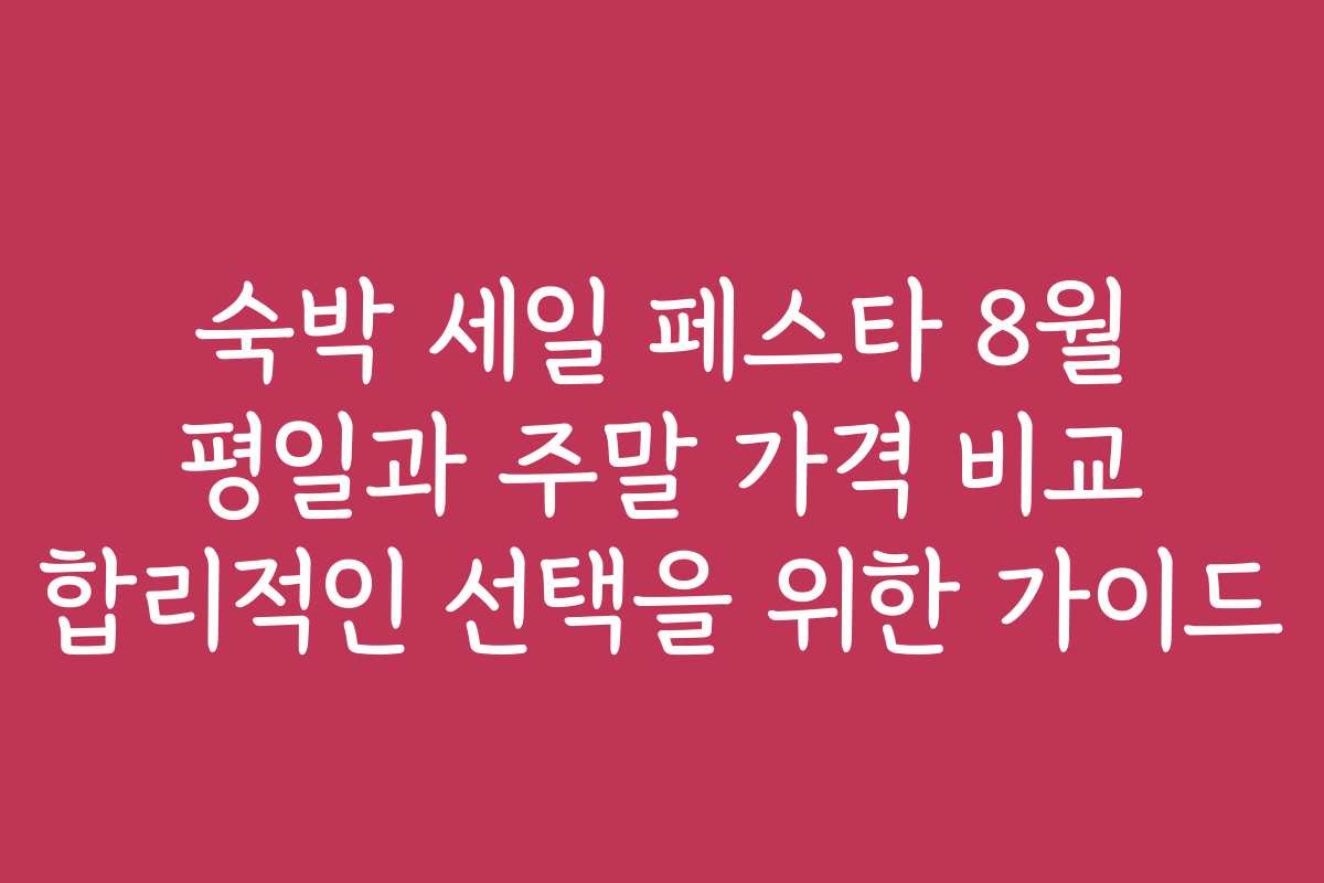 숙박 세일 페스타 8월 평일과 주말 가격 비교 합리적인 선택을 위한 가이드