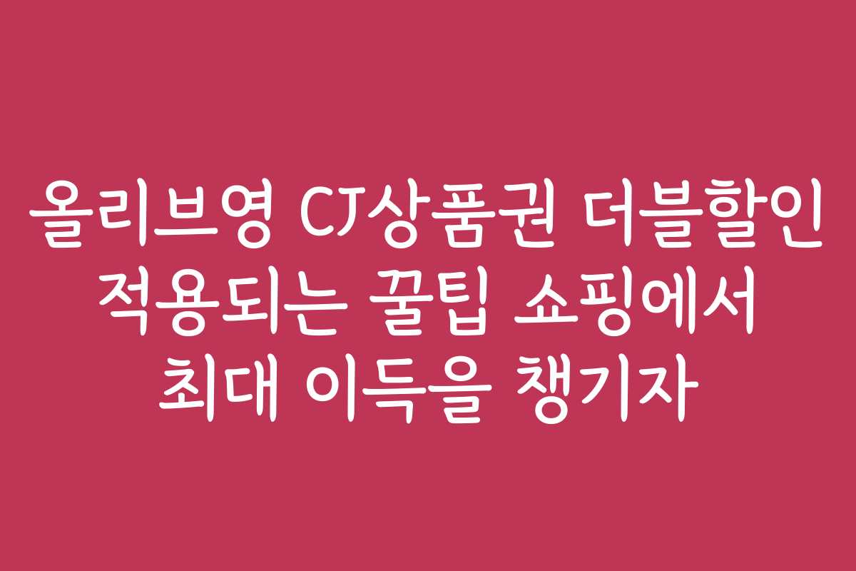 핵심 키워드: 올리브영, CJ상품권, 더블할인, 쇼핑, 적립금, 할인쿠폰, 꿀팁, 소비 패턴, 프로모션, 쇼핑 전략, 경험 공유.