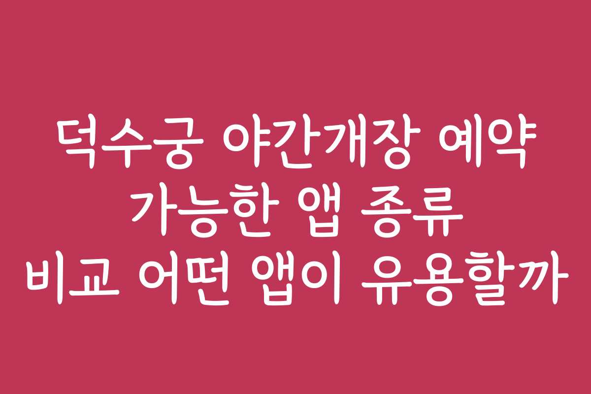 덕수궁 야간개장 예약 가능한 앱 종류 비교 어떤 앱이 유용할까