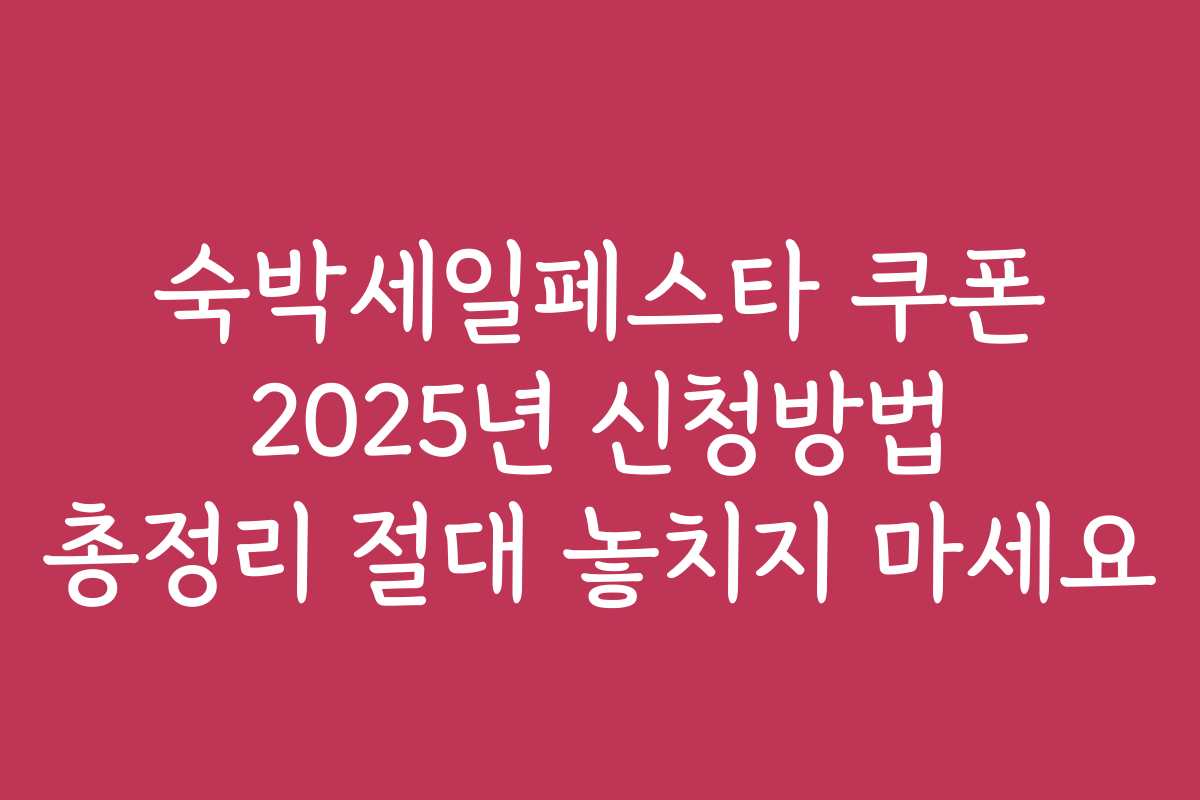 숙박세일페스타 쿠폰 2025년 신청방법 총정리 절대 놓치지 마세요