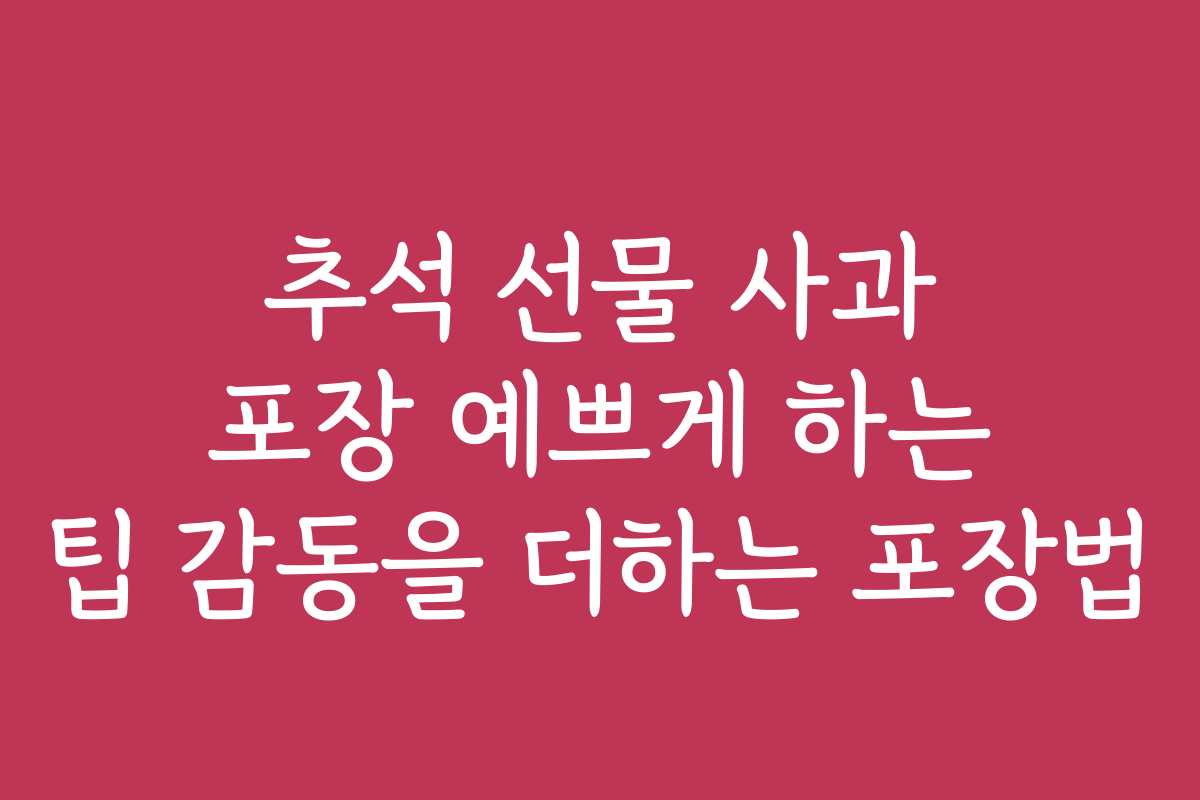 핵심 키워드: 추석 선물, 사과 포장, 예쁘게 포장하는 팁, 감동적인 포장법, 포장 소재, 메시지 카드, 디자인 요소, 포장 단계, 포장 재료, 포장 방법, 친환경 포장