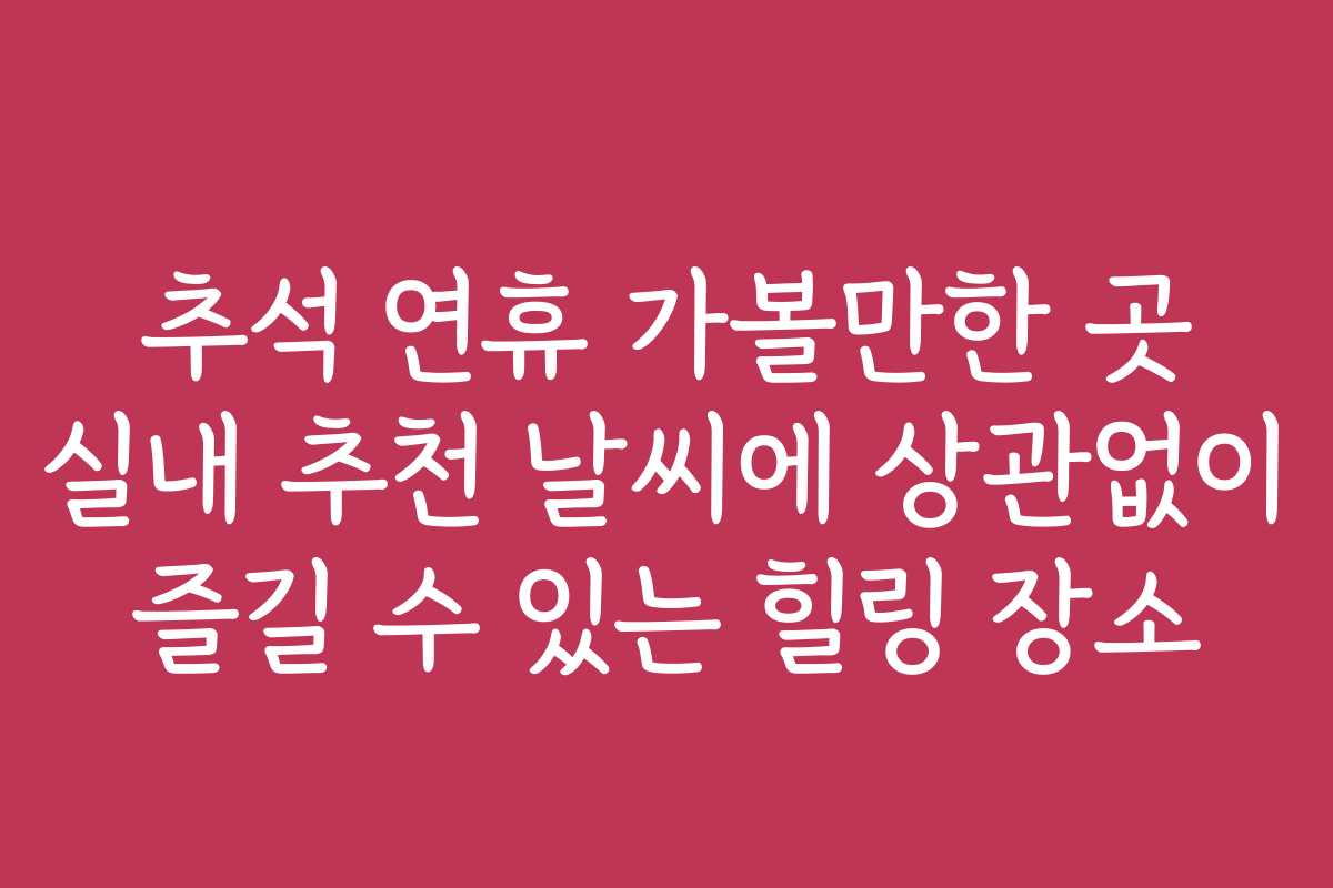 힐링 장소, 추석 연휴, 실내 추천, 가족과 함께, 다양한 활동, 문화 체험, 음악 카페, 테라피 카페, VR 테마파크, 스트레스 해소