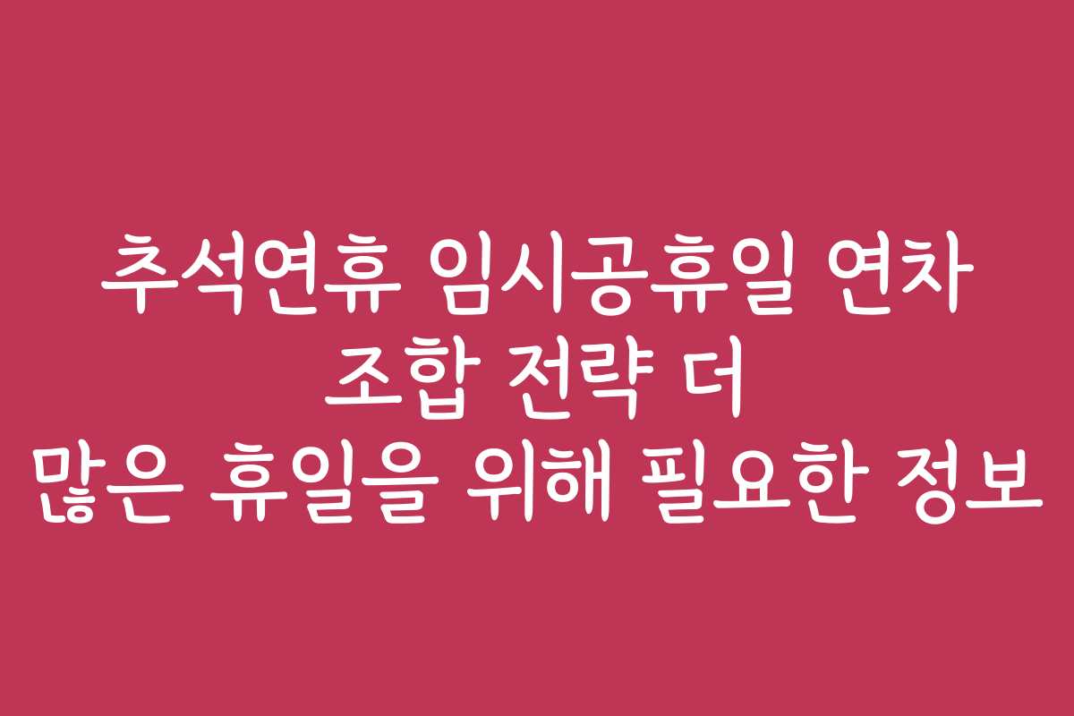 추석연휴 임시공휴일 연차 조합 전략 더 많은 휴일을 위해 필요한 정보