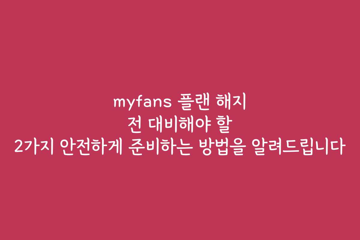 myfans 플랜 해지 전 대비해야 할 2가지 안전하게 준비하는 방법을 알려드립니다