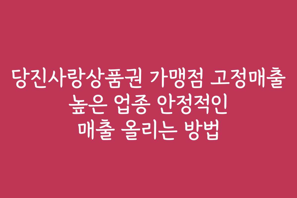 당진사랑상품권 가맹점 고정매출 높은 업종 안정적인 매출 올리는 방법