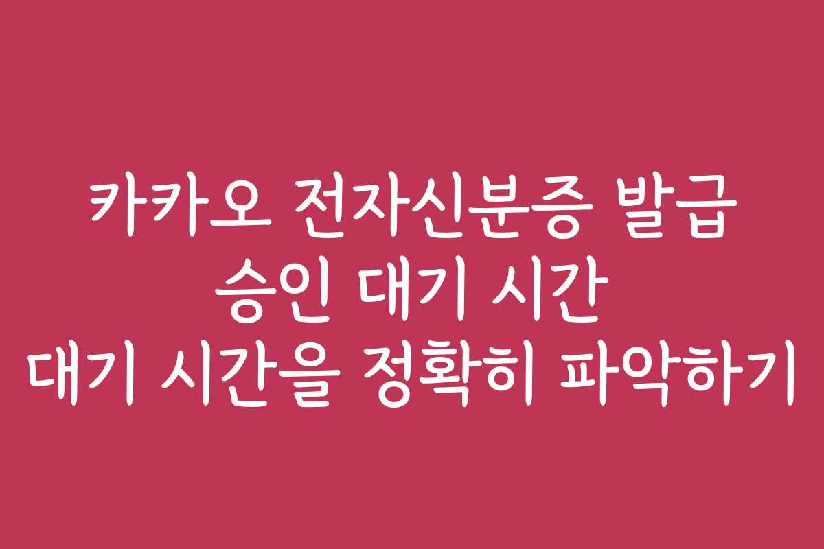 카카오 전자신분증을 발급 받기 위한 승인 대기 시간은 많은 사람들이 궁금해하는 부분입니다. 많은 사용자들이 대기 시간을 고려하지 않고 신청을 했다가 실망감을 느끼곤 합니다. 과연 카카오 전자신분증 발급 승인 대기 시간이 얼마나 걸리는지, 그리고 그 시간을 단축하거나 보다 정확히 파악하기 위한 방법은 무엇인지 알아보겠습니다.