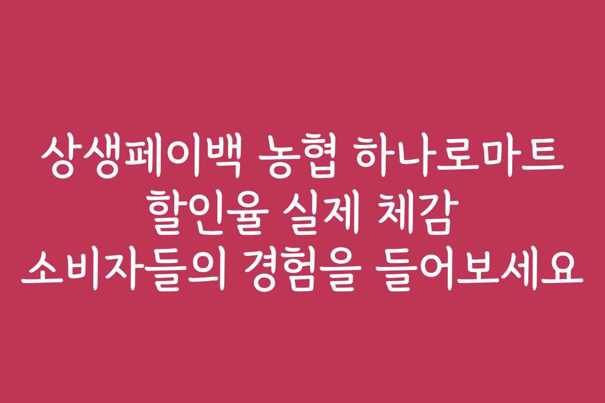 상생페이백 농협 하나로마트 할인율 실제 체감 소비자들의 경험을 들어보세요