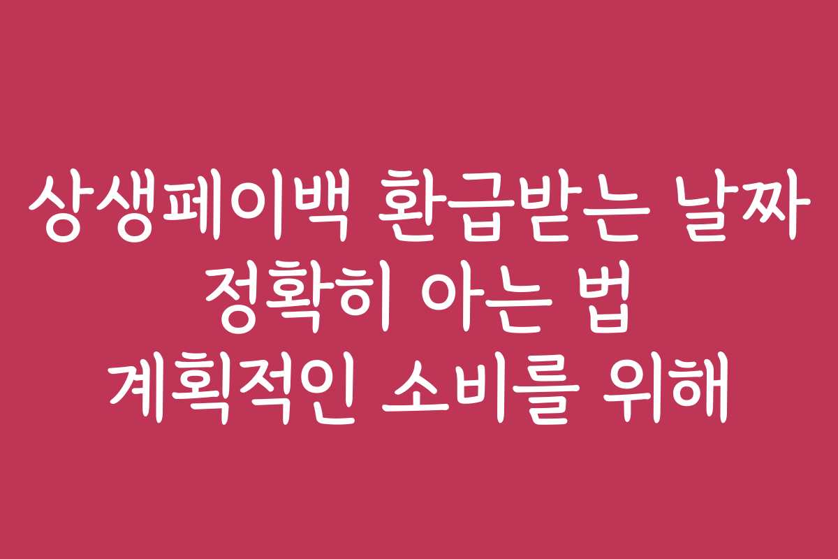 상생페이백은 소비자에게 매우 유익한 제도로, 환급 날짜를 명확히 아는 것이 계획적인 소비에 큰 역할을 합니다. 계획적인 소비를 통해 더 많은 혜택을 누리세요!