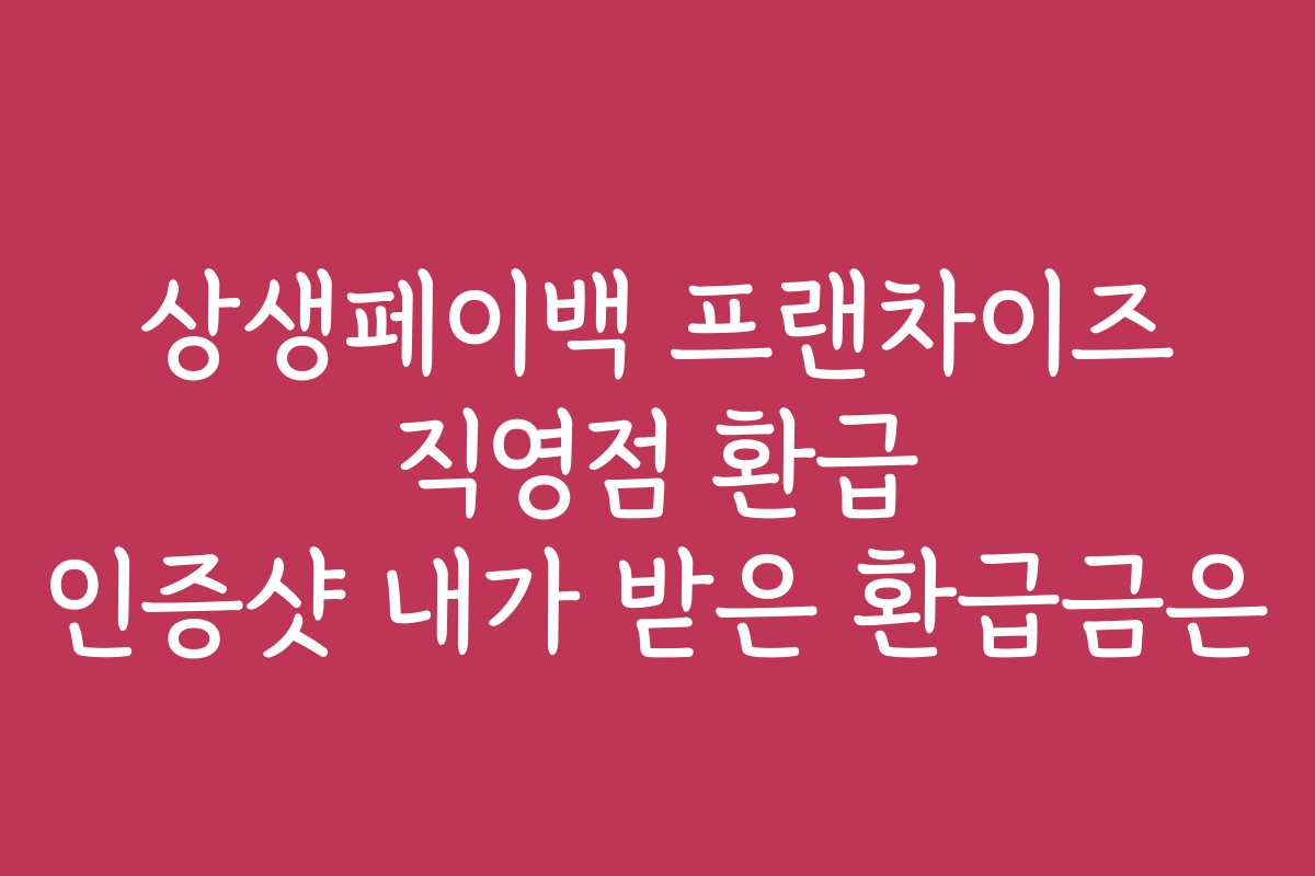 상생페이백 프랜차이즈 직영점 환급 인증샷 내가 받은 환급금은