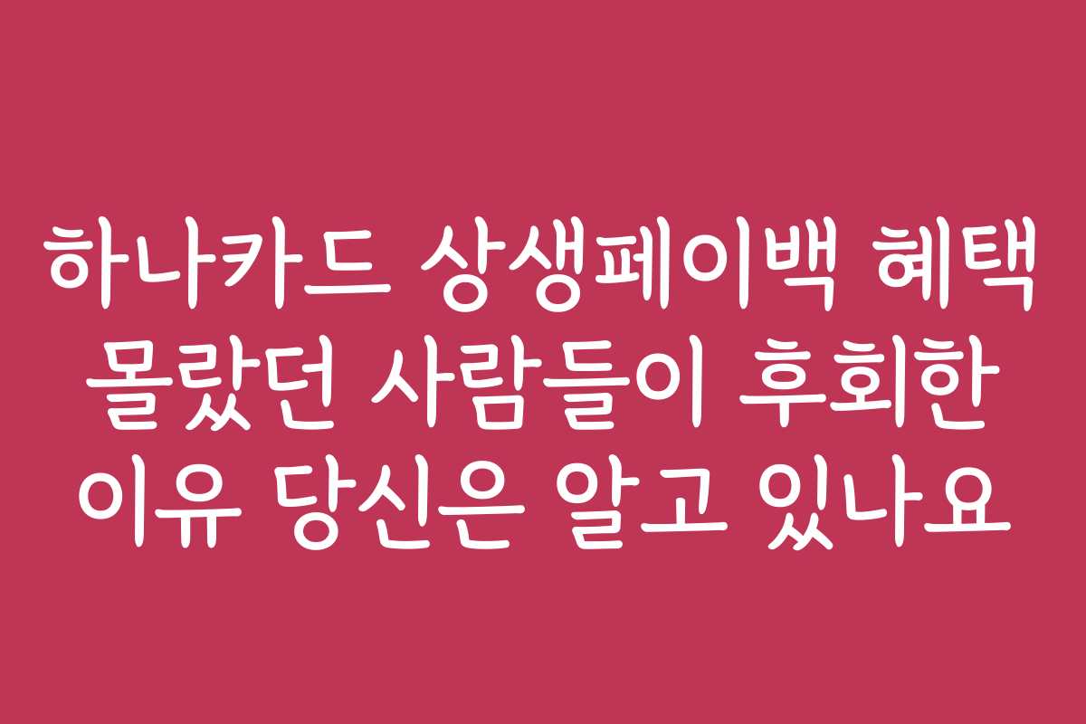 하나카드 상생페이백 혜택 몰랐던 사람들이 후회한 이유 당신은 알고 있나요