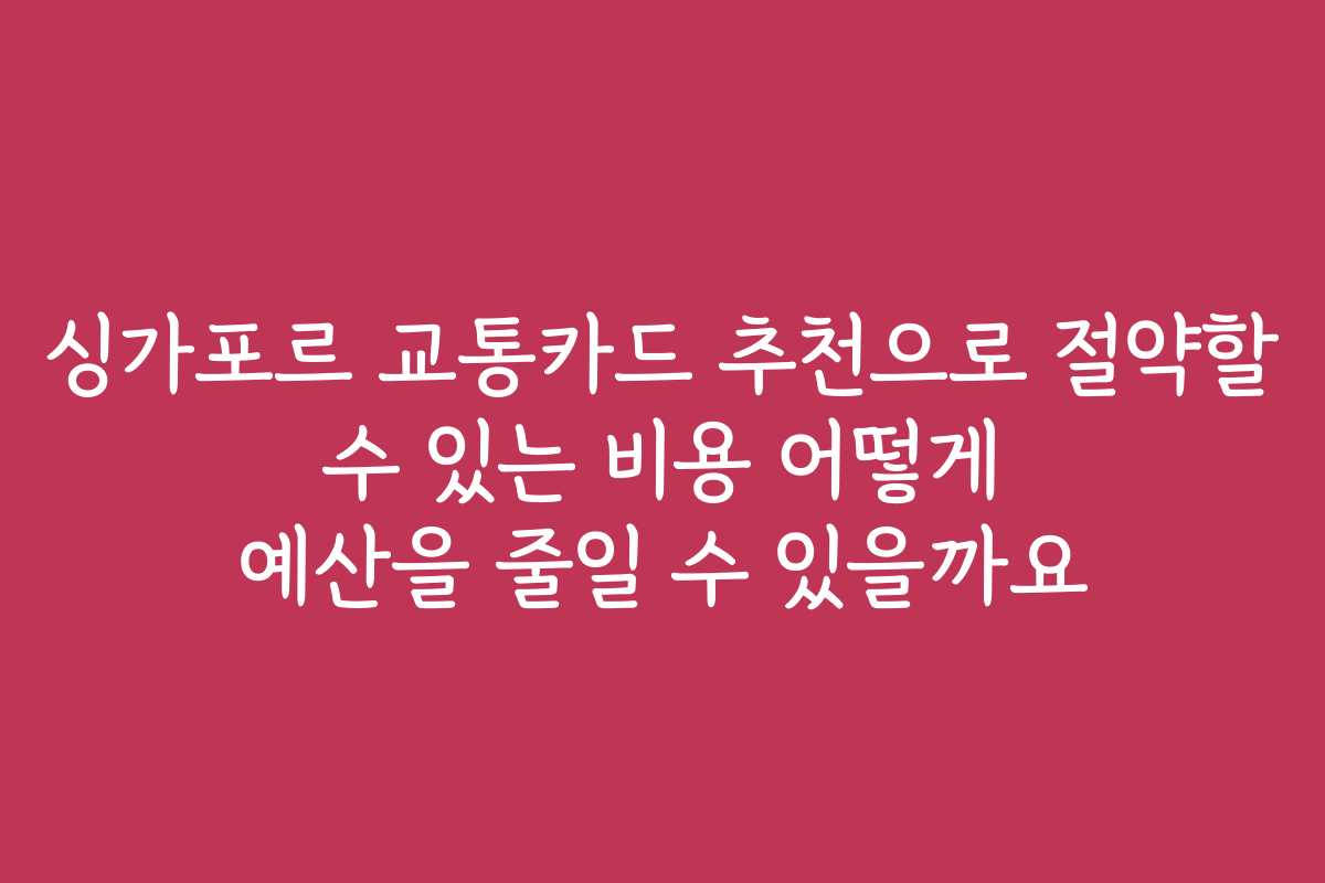 핵심 키워드: 싱가포르 교통카드, 예산 절약, 비용 관리, 교통비, MRT 사용, 카드 추천, 관광객용 카드, 여행 경비 절감, EZ-Link 카드, NETS FlashPay, 버스 사용