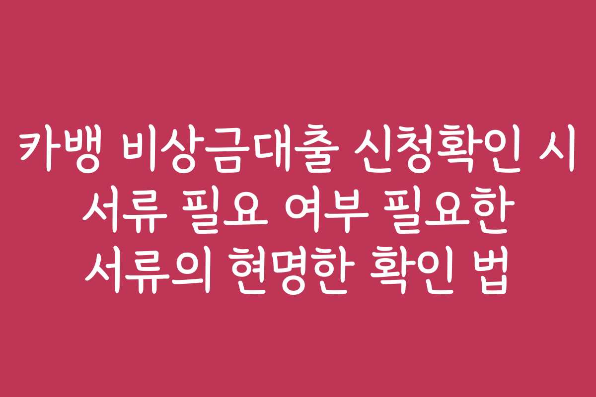 키워드: 카뱅 비상금대출, 신청 확인, 필요한 서류, 현명한 확인법, 대출 서류, 서류 준비, 대출 신청, 서류 필요, 대출 후기, 금융 서비스, 대출 조건