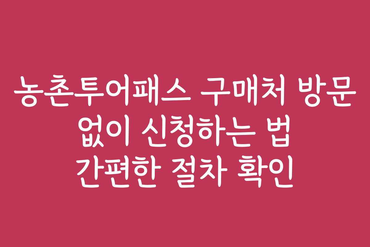 핵심 키워드: 농촌투어패스, 온라인 신청, 구매처 방문, 신청 방법, 농촌관광, 할인 혜택, 예약 절차, 고객 후기, 서비스 비교, 자주 묻는 질문, 효율적인 신청 방법.