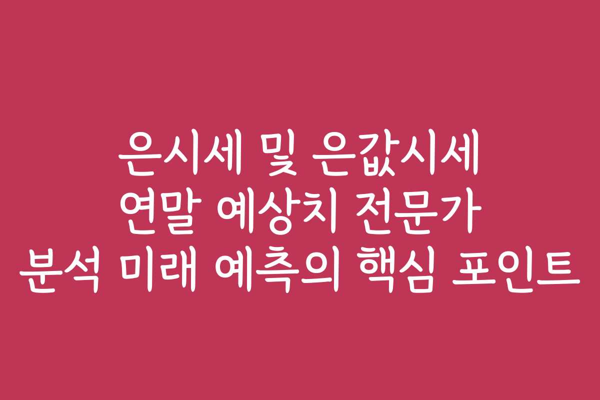 은시세 및 은값시세 연말 예상치 전문가 분석 미래 예측의 핵심 포인트
